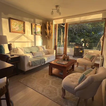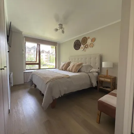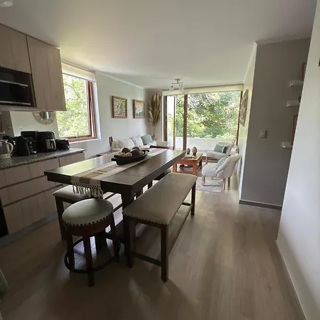 Set 4.8 km from Enchanted Forest Pucon Theme Park, the 70 m^2 Apartamento familiar en Pucón Pucon comprises a patio and a balcony overlooking the mountain. This 2-bedroom apartment includes a terrace with a swimming pool.